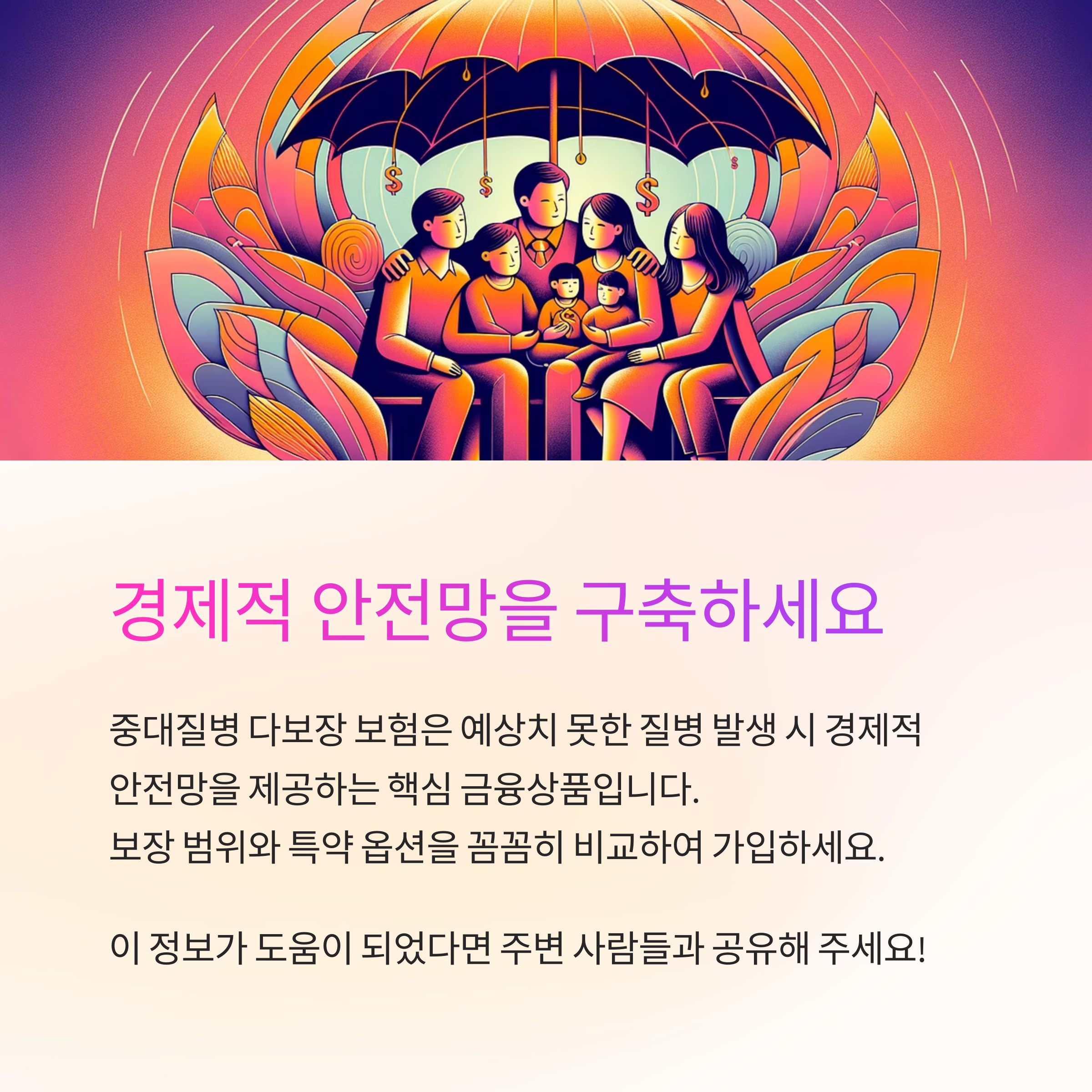 중대질병 다보장 보험은 암, 뇌졸중, 심근경색 같은 주요 질병을 종합적으로 보장하며, 최근 경제적 안전망으로 주목받고 있습니다.
