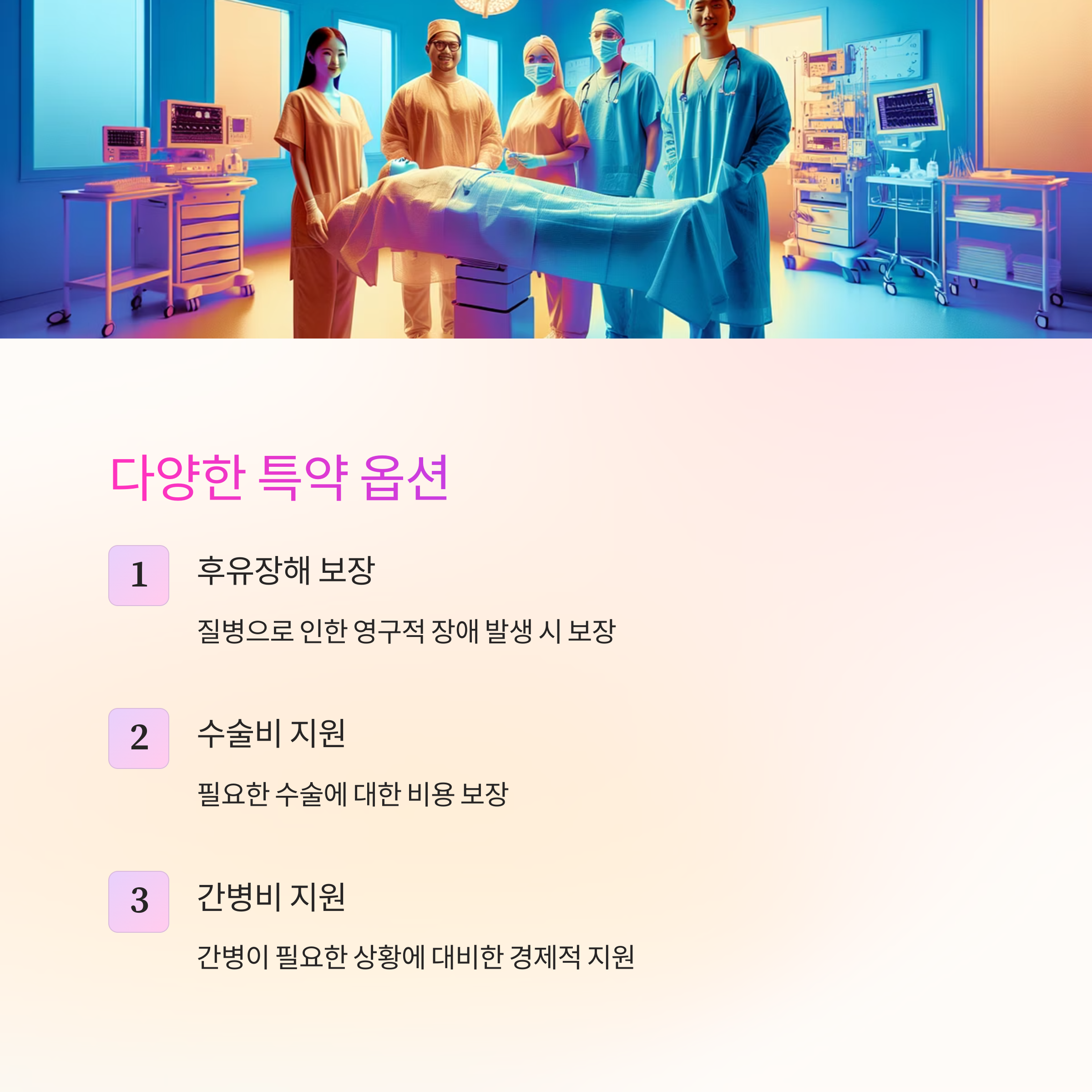 3. 특약 옵션은 보장 범위를 넓힐 수 있지만, 전체 보험금 계산 시 반드시 부담 능력을 고려하세요.